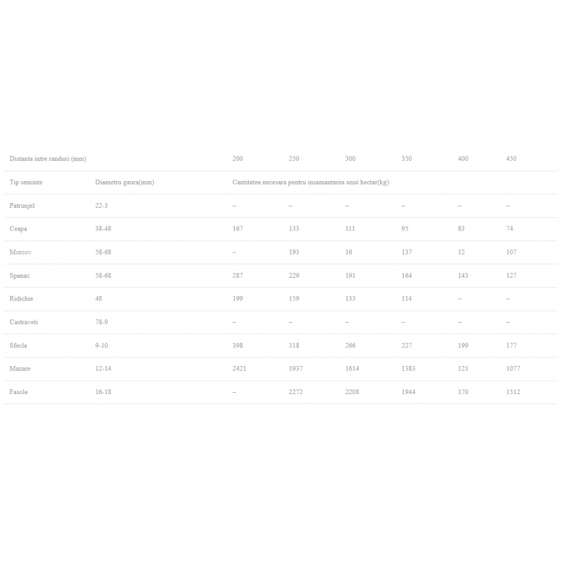 Avantaje : Ajustarea diamentru orificiului de evacuare / Ajustarea distantei de samantare (la 27 cm su 54 cm) / Ajustarea distantei dintre randuri